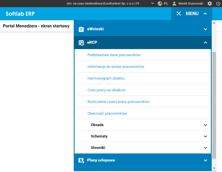 W Portalu Menedżera udostępniono funkcjonalność eRCP – ergonomiczny i szybki interfejs do procesów planowania czasu pracy obiektów i pracowników, rozliczania i kontroli czasu pracy, dedykowany dla kierowników. Bezpośredni dostęp do danych pracowników oparty jest na hierarchii podległości służbowej lub może być związany z przypisaniem pracowników do osób obsługujących. eRCP dostarcza kierownikom niezbędnych danych o nieobecnościach i wymaganiach obsady, wspomaga ich w planowaniu czasu pracy, w kontroli norm ustawowych, w rozliczaniu czasu pracy, a następnie pozwala na autoryzację czasu pracy i udostępnienie danych o rzeczywistym czasie pracy do naliczenia wynagrodzeń w wymaganych terminach.