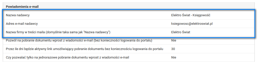 ·        nazwę firmy w treści maila (domyślnie jest ona taka sama jak nazwa nadawcy).
