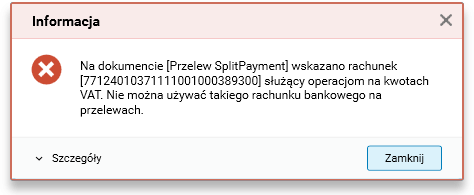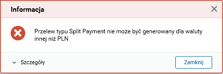 Rys. Blokada wystawiana przelewu Split Payment dla waluty innej niż PLN