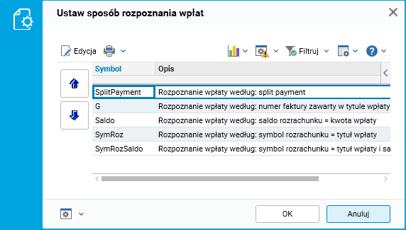 Rys. Nowy typ rozpoznawania wpłat, w oknie procedury Ustaw sposób rozpoznawania wpłat