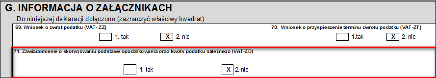 Rys. Deklaracja VAT-7 wersja 17 sekcja G