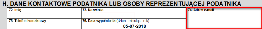 4. W Sekcji H pojawiło się nowe pole 74. Adres e-mail.