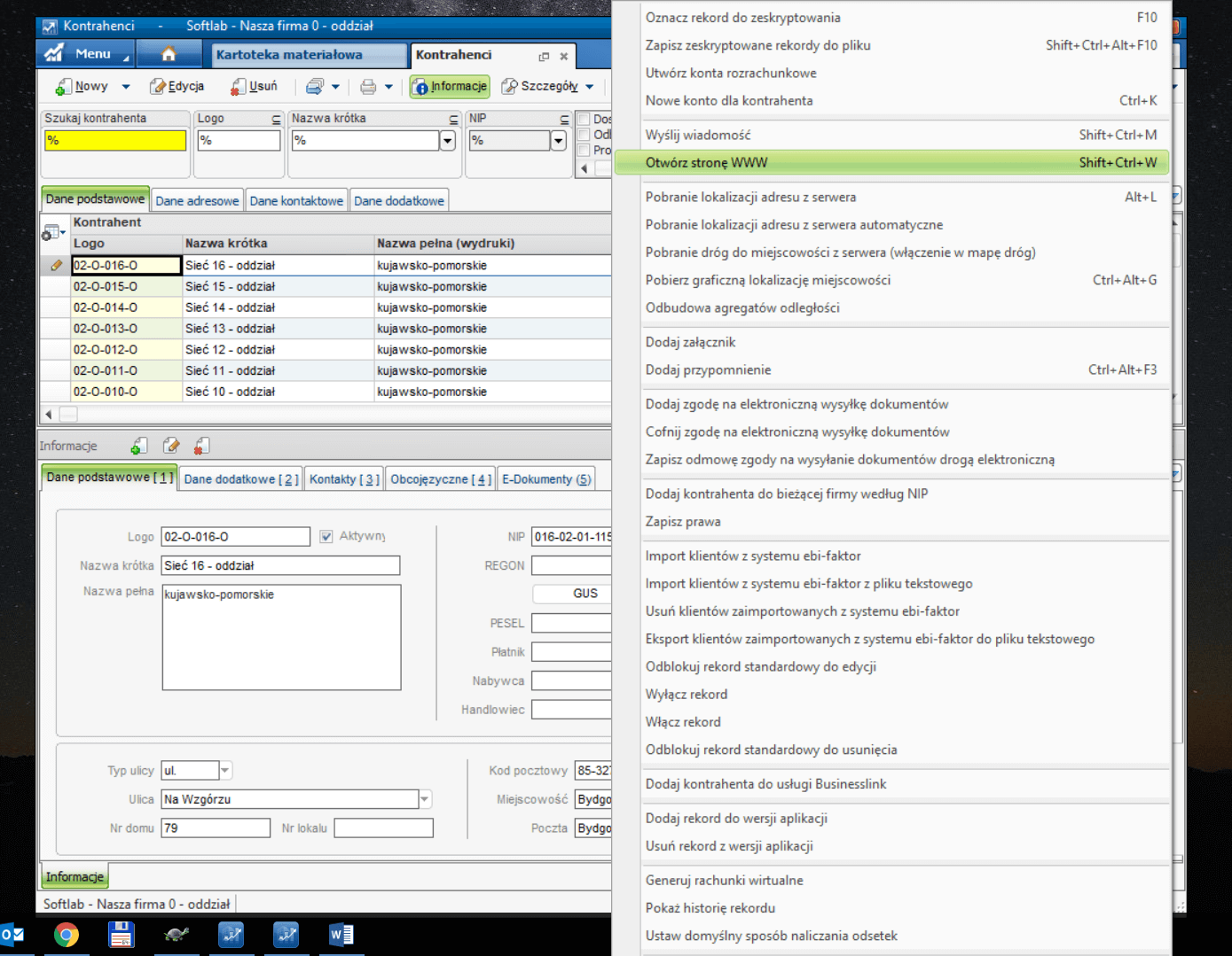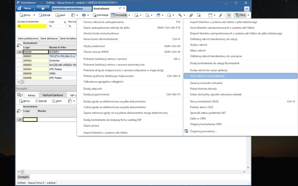 Rys. Menu procedur z dużą ilością pozycji w wersji 92 systemu Softlab