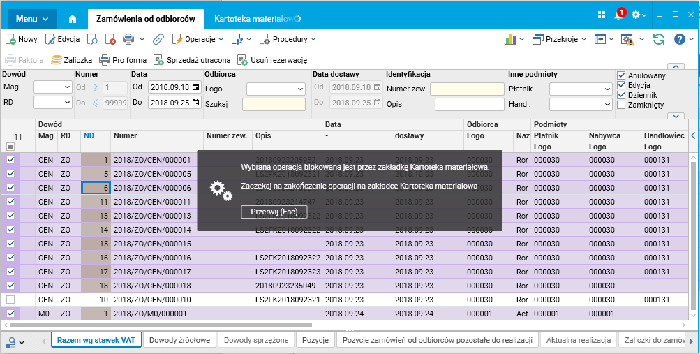 Aplikacja działa w oparciu o słowniki/zakładki. Dotychczas, jeśli wykonywaliśmy jakąś operację lub otworzyliśmy okno modalne na jednej z zakładek, to cała aplikacja była zablokowana. Obecnie, podczas pracy w trybie pracy jednoczesnej, takiej blokady już nie ma.