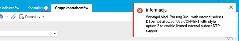 Rys. Powiadomienie o błędzie podczas operacji