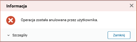 Rys. Komunikat o przerwanej operacji