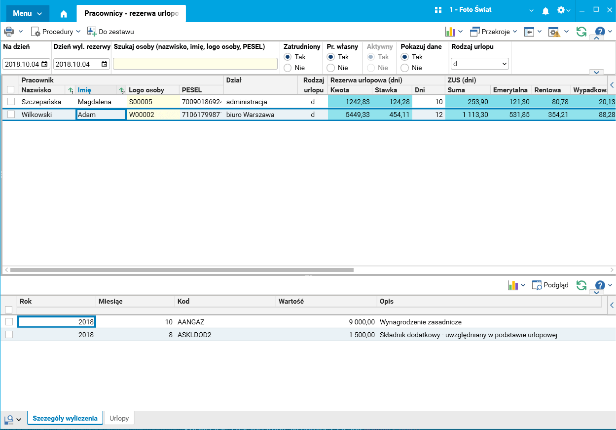 Rys. Przeglądarka Pracownicy – rezerwa urlopowa