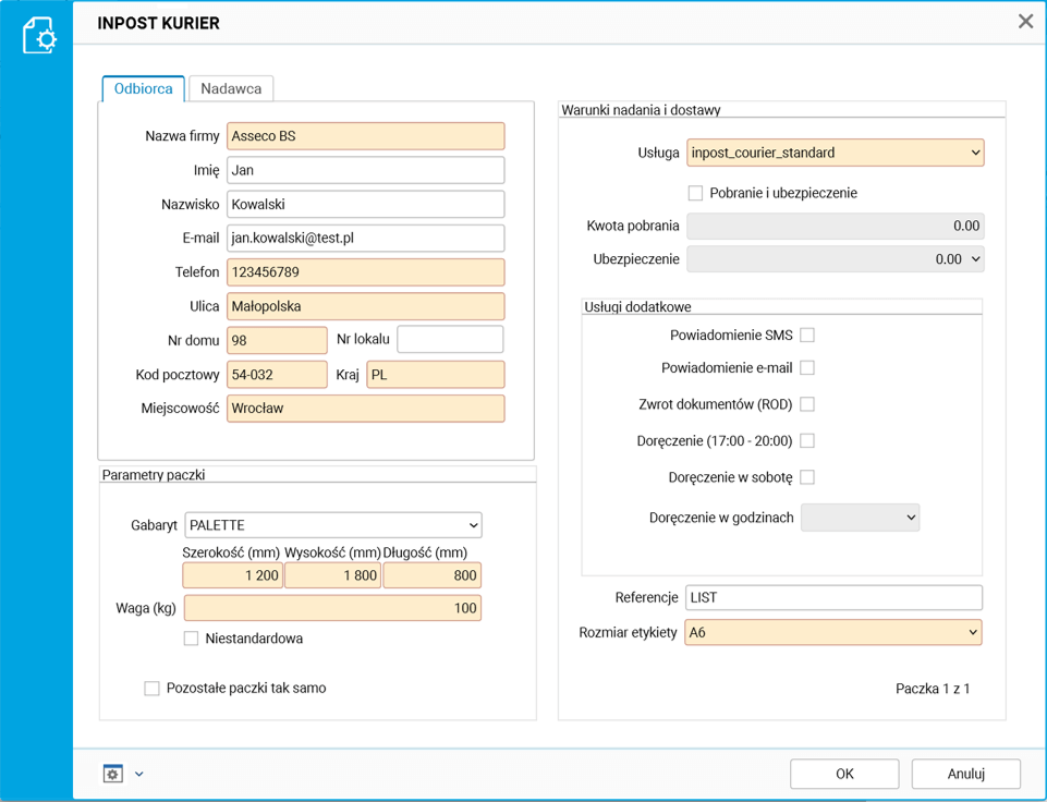 Dane odbiorcy są automatycznie uzupełniane na podstawie kontrahenta znajdującego się na dokumencie zamówienia.