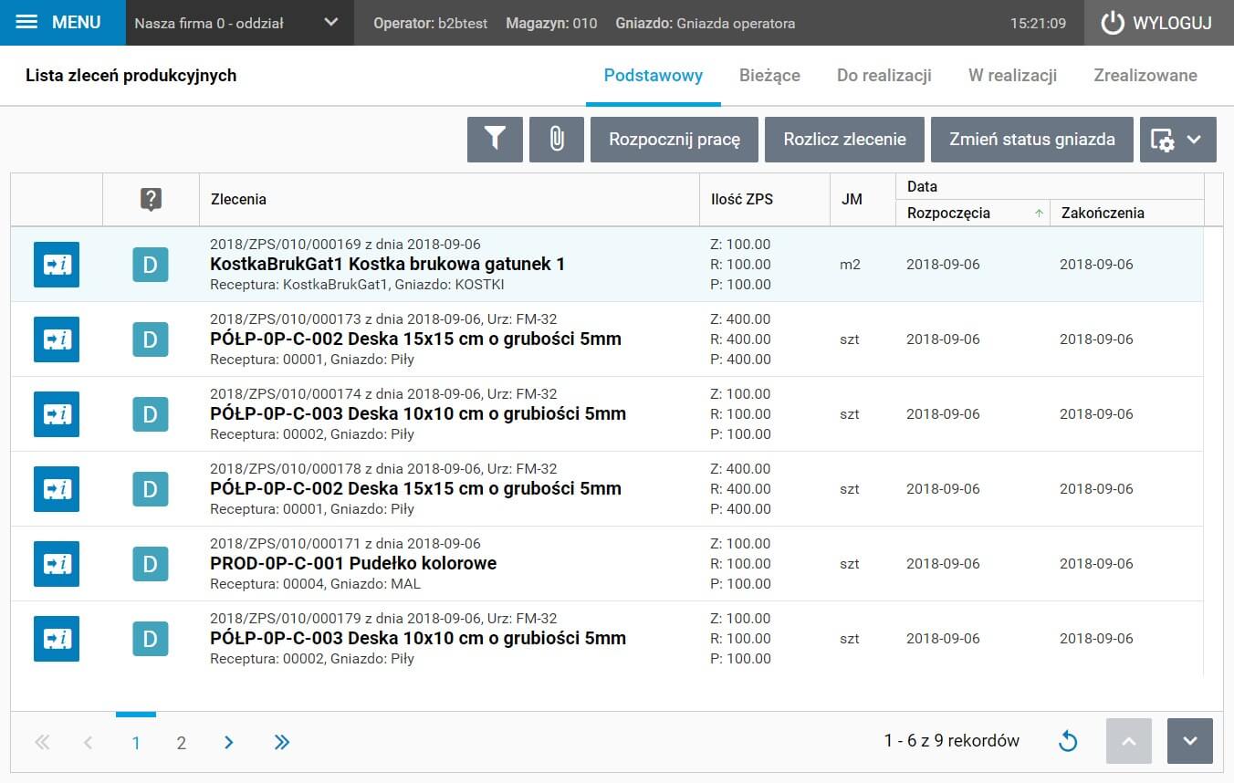 Rys. Lista zleceń produkcyjnych