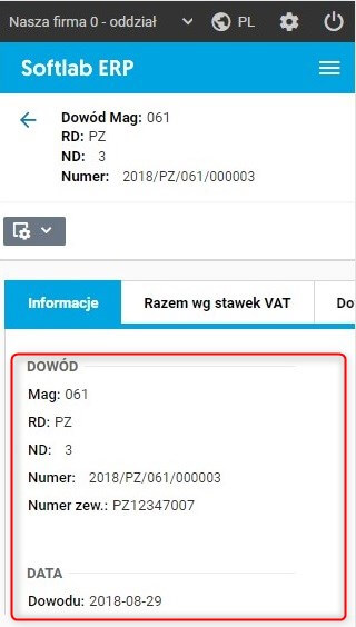 W aplikacji dostępowej HTML został dodany nowy szczegół Informacje, który podsumowuje wszystkie aktywne pola danego rekordu (karta rekordu). Celem zmiany było zapewnienie użytkownikowi dostępu do informacji o danym rekordzie w trybie mobilnym.