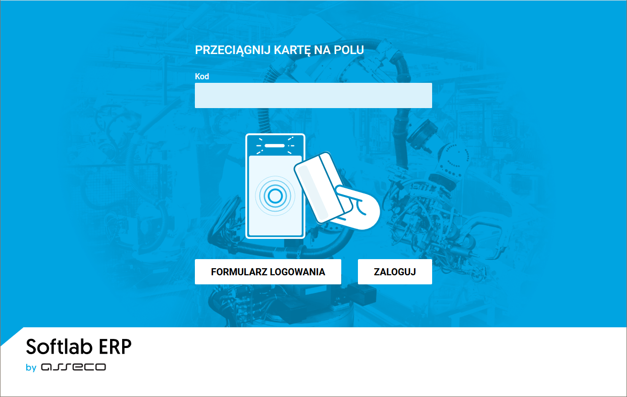 Na poniższym rysunku pokazany jest ekran logowania z możliwością użycia karty magnetycznej.