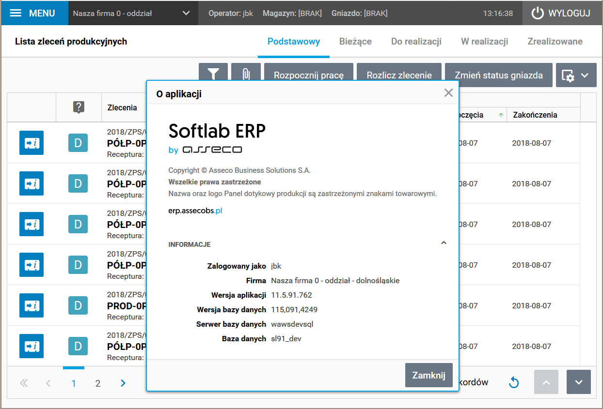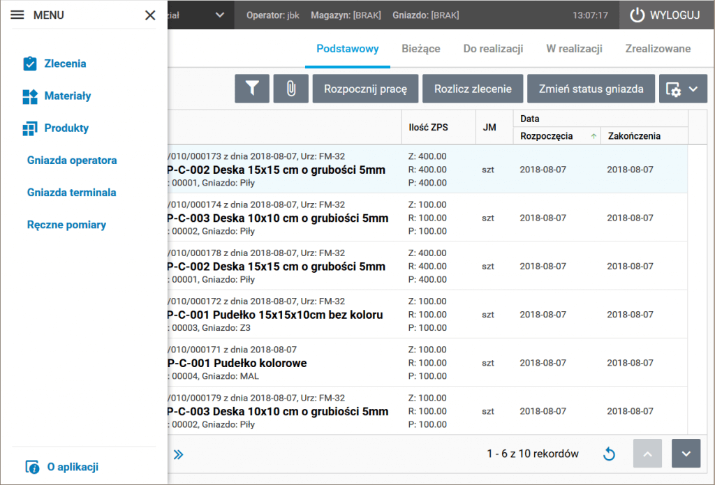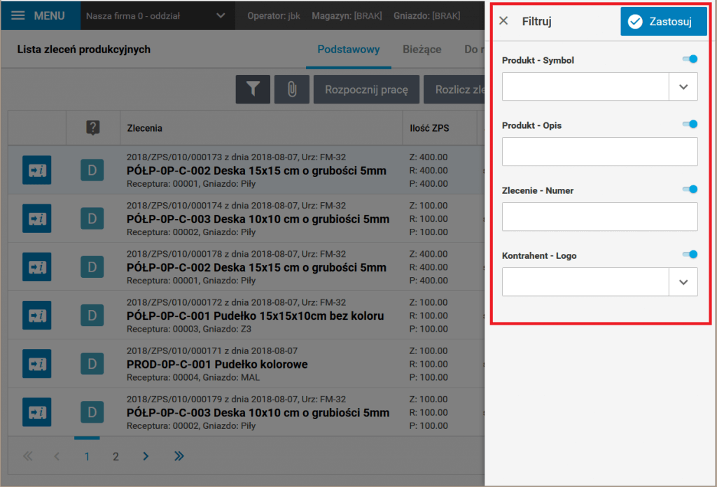 Rys. Ekran z listą zleceń produkcyjnych