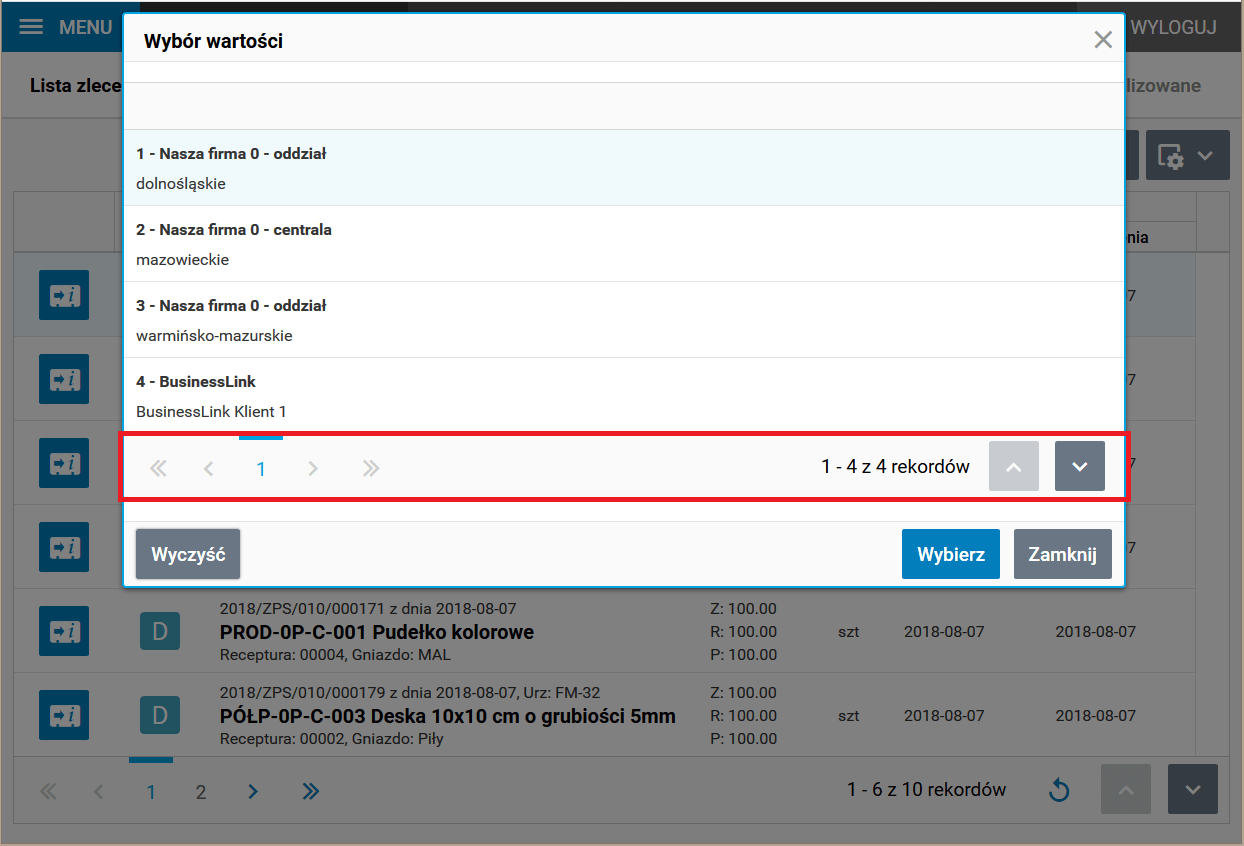 Rys. Okno listy wyboru wartości – Wybór firmy