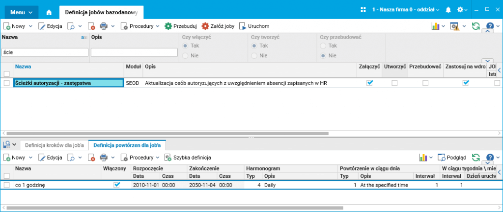 Rys. 3. Job aktualizujący zastępstwa na ścieżkach autoryzacji