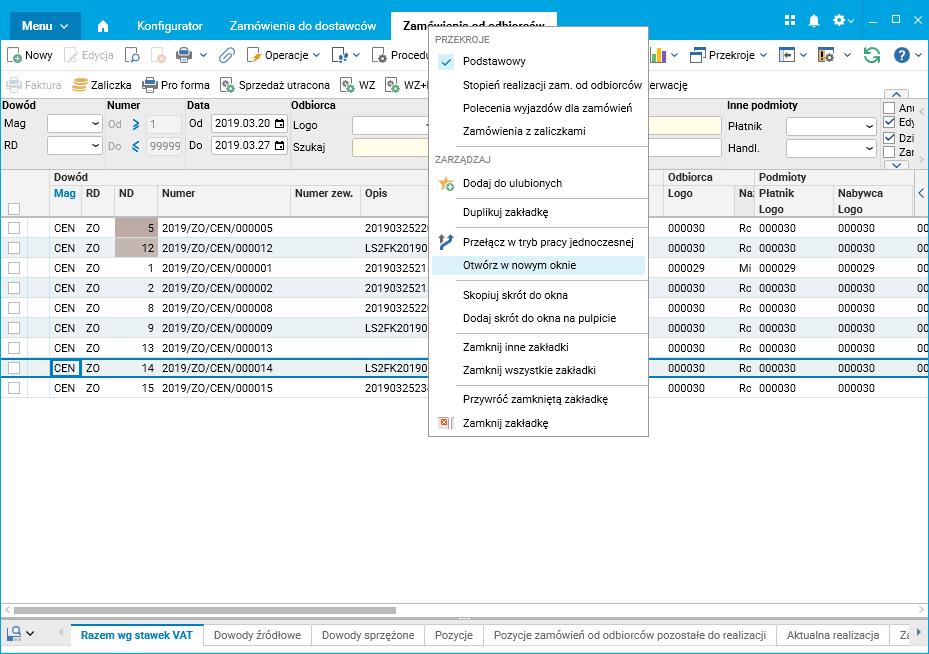 ·         Poprzez wybranie opcji Otwórz jako nową główną zakładkę z menu zakładki szczegółu.