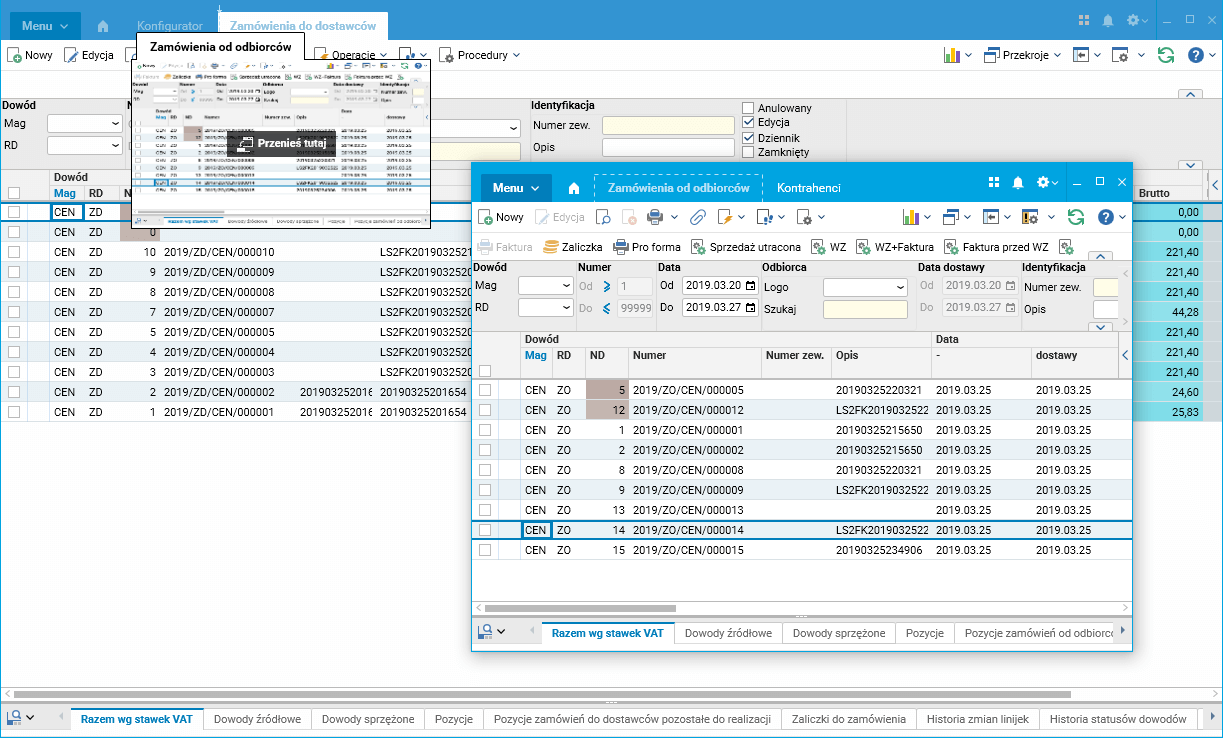 Rys. Przeciąganie zakładki szczegółu w celu otworzenia jej w nowym oknie