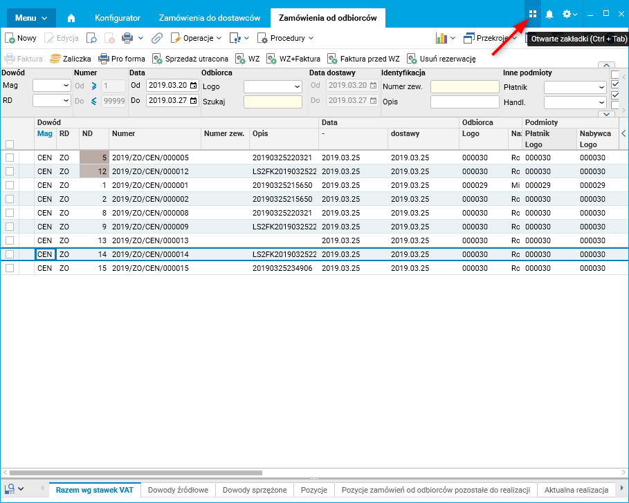 W wersji 94 aplikacji dostępowej WEB została wprowadzona możliwość pracy na wielu oknach w celu zwiększenia ergonomii pracy użytkownika.