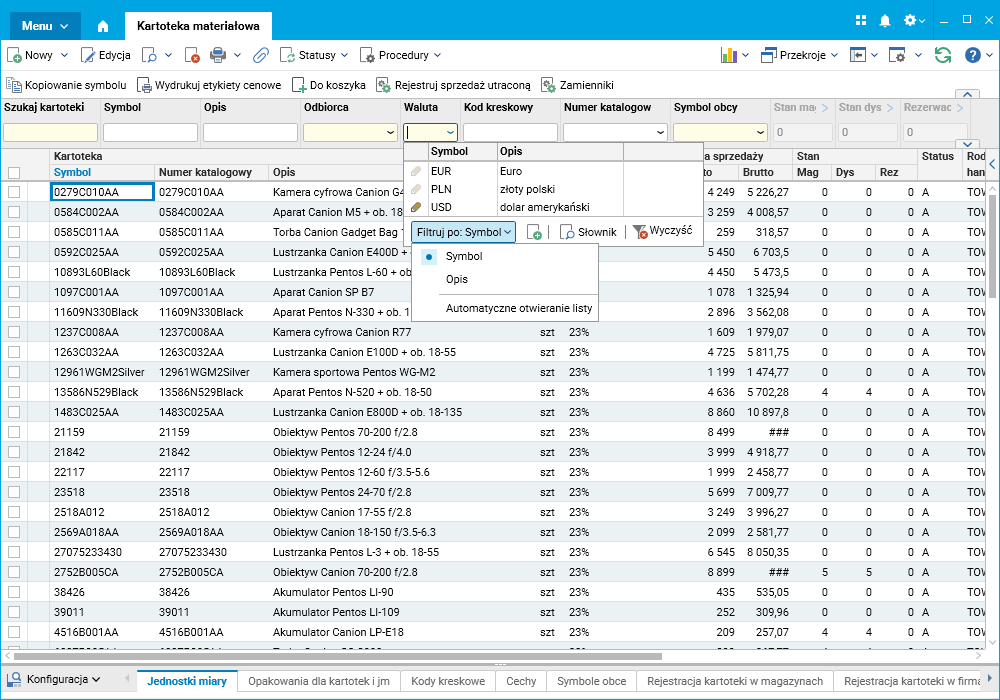 Uwaga! W niektórych listach wartości opcja filtrowania po wszystkich polach nie jest dostępna. Domyślnie ustawiona jest tam jedna z wartości, użytkownik może ją zmienić na inną.