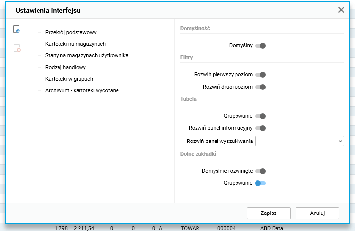 ·         wyłączenie lub włączenie grupowania szczegółów.