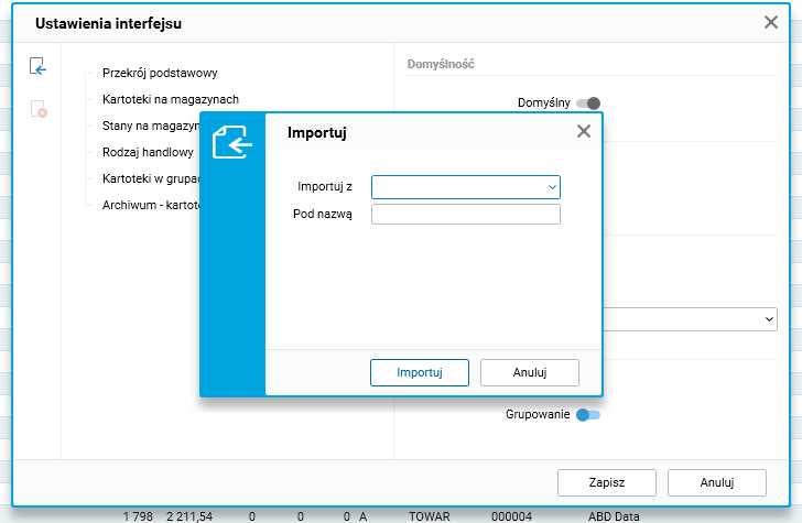 Zmieniony został wygląd okna do zapisu lub modyfikacji ustawień. Tak wygląda okno po zmianie w wersji 94: