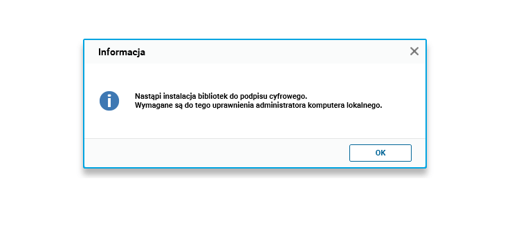 W wersji 94 aplikacji dostępowej WEB dodany został mechanizm, który przed złożeniem podpisu sprawdza, czy są zainstalowane odpowiednie biblioteki (Ec2 oraz Xades). Jeśli nie są, to wyświetla stosowny komunikat i umożliwia ich automatyczną instalację.