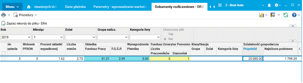 Pole to odpowiada za wygenerowanie deklaracji rozliczeniowych ZUS RCA II oraz ZUS DRA II.