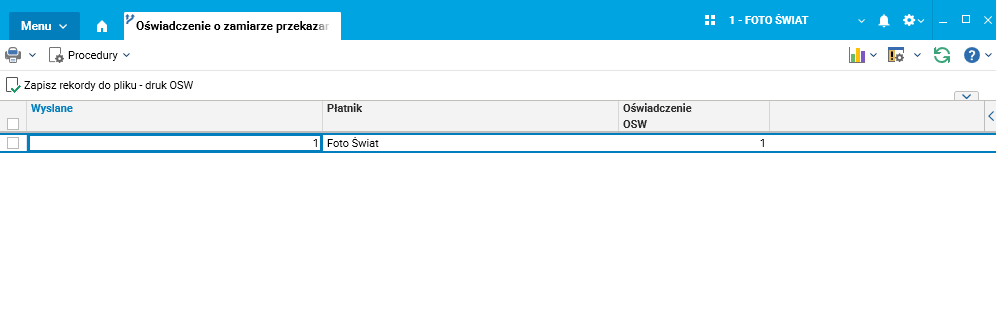 Plik do importu w programie Płatnik tworzy się za pomocą procedury Zapisz rekordy do pliku – druk OWA