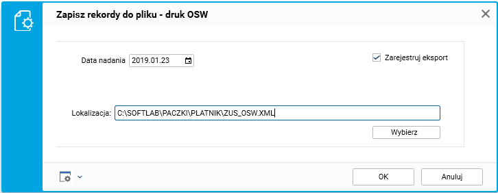 Rys. Parametry procedury Zapisz rekordy do pliku – druk OSW