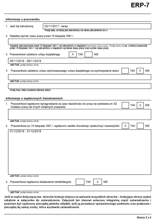 Rys. Przykładowe zaświadczenie ZUS ERP-7, strona 2