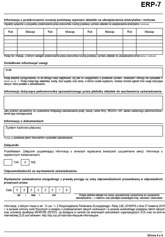 Rys. Przykładowe zaświadczenie ZUS ERP-7, strona 4
