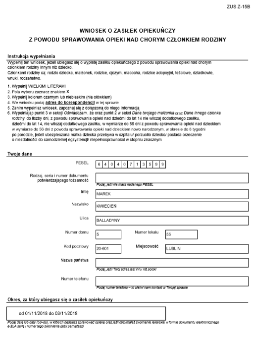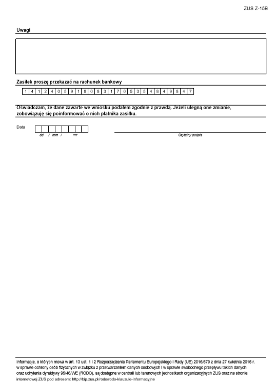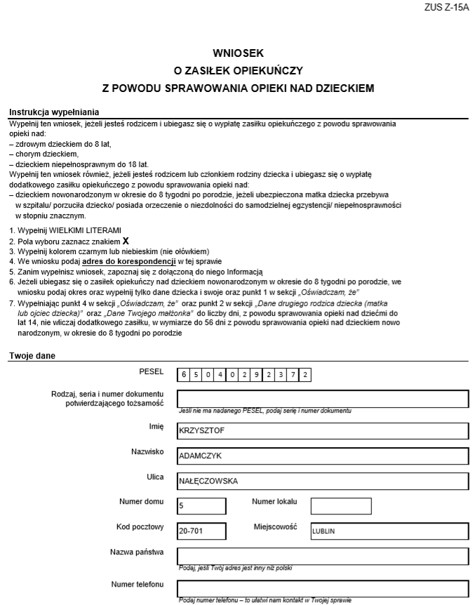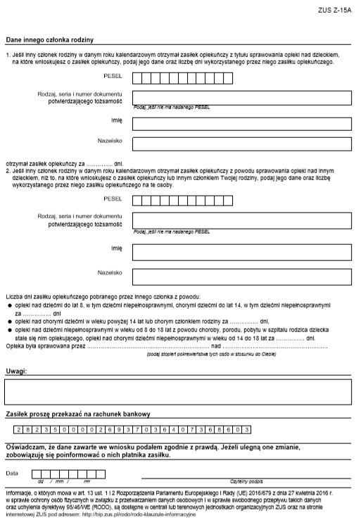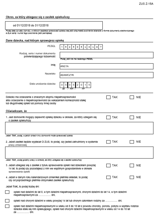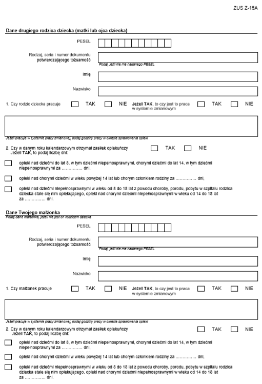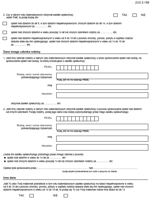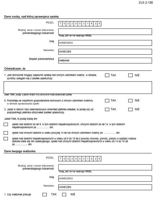 21 stycznia 2019 r. ZUS udostępnił nowe formularze wniosku o zasiłek opiekuńczy z powodu sprawowania opieki nad chorym członkiem rodziny Z-15B oraz wniosku o zasiłek opiekuńczy z powodu sprawowania opieki nad dzieckiem Z-15A.