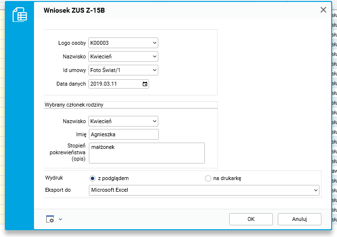 Rys. Parametry raportu Wniosek ZUS Z-15B