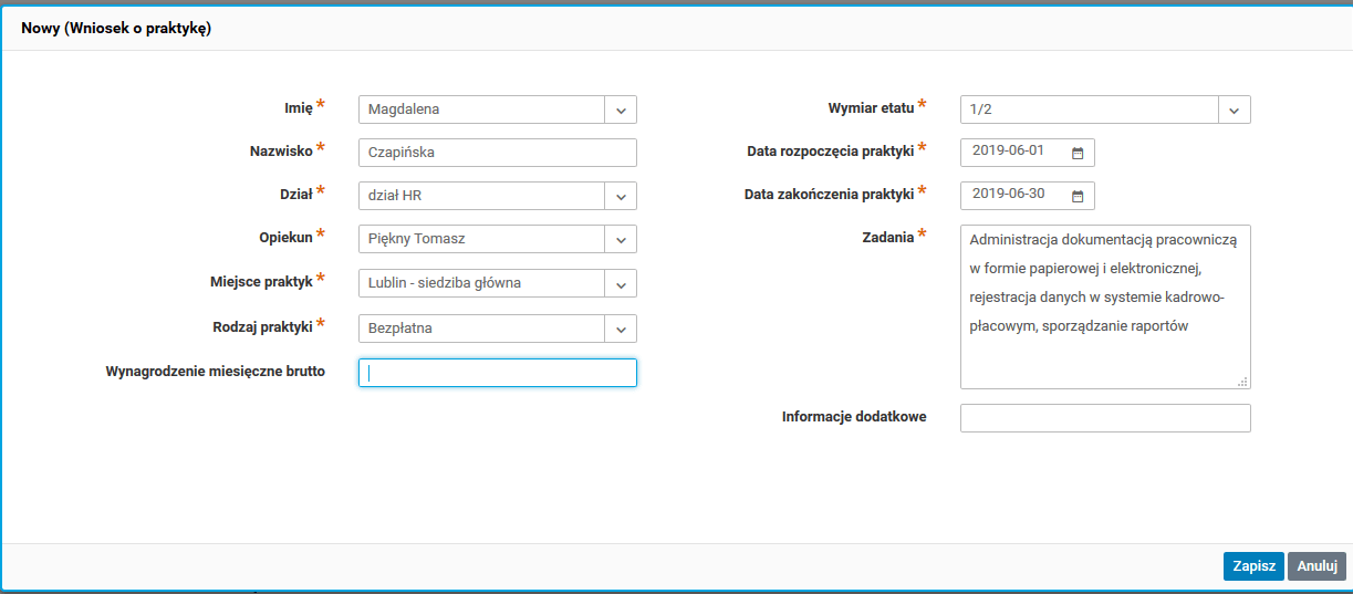(Portal menedżera) Wniosek o praktykę
