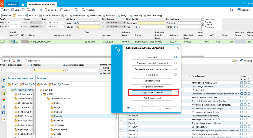 Rys. 1. Nowy system uprawnień: nadawanie uprawnień dla rejestru zamówień od odbiorców