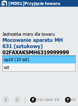 Następnie użytkownik zostanie poproszony o podanie jednostki miary powiązanej z kodem kreskowym.