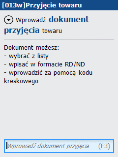 Proces przyjęcia towaru został rozszerzony o automatyczny wybór dokumentu przyjęcia na podstawie odczytanego towaru. W przypadku istnienia dużej liczby dokumentów pozwala to na pominięcie czasochłonnego wyszukiwania awiza dostawy.