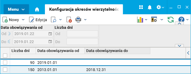 Rys. Słownik Konfiguracja okresów wierzytelności