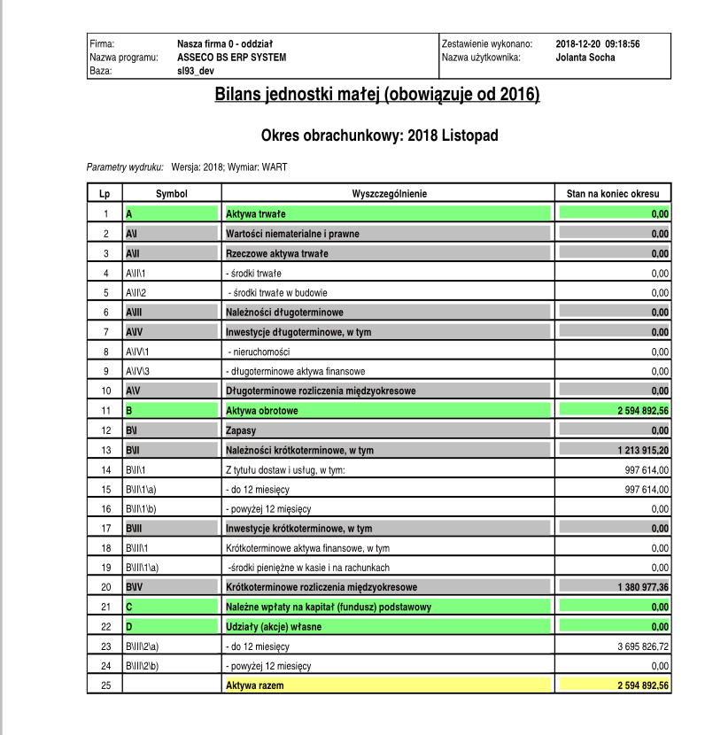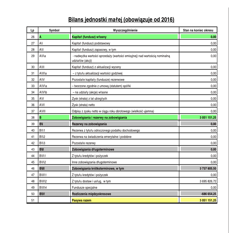 Przykładowy wydruk bilansu dla jednostki małej.