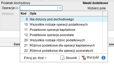 Rys. Wartości dostępne w nowym filtrze Podatek dochodowy – Operacje