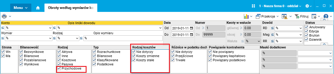 Zmiany w słowniku Obroty według wymiarów kontrolingowych
