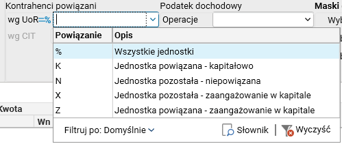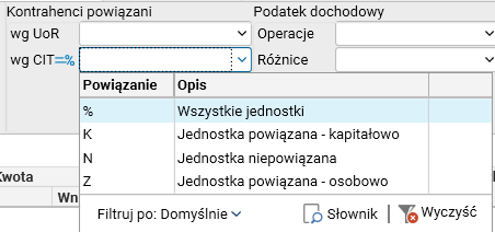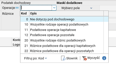 Rys. Wartości dostępne w nowym filtrze Podatek dochodowy – Operacje