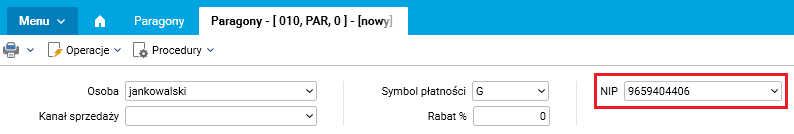 Rys. Paragon z uzupełnionym numerem NIP