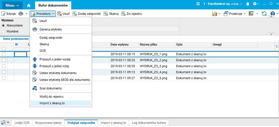 Mechanizm importu dokumentów z portalu skanuj.to był do tej pory dostępny w module Sekretariat. W wersji 94 rozszerzono go na zamówienia od odbiorców.
