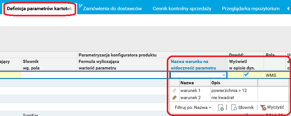 Rys. Nazwa warunku na widoczność parametru