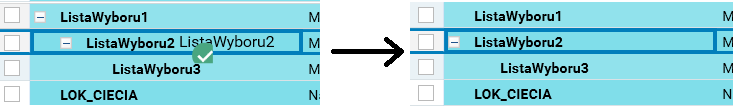 Przeciągnięcie elementu na siebie samego powoduje wypięcie go z drzewa i przeniesienie na poziom zerowy (korzeń). Jeżeli wypinany element jest korzeniem poddrzewa, to po wypięciu hierarchia zostanie zachowana.