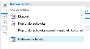 Rys. Menu kontekstowe tabeli z wzorcami wydruku