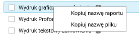 · W nowej wersji dodano menu do szybkiego kopiowania nazwy raportu bądź nazwy pliku. Wystarczy kliknąć prawym przyciskiem myszy na wzorcu i wybrać interesującą nas opcję.
