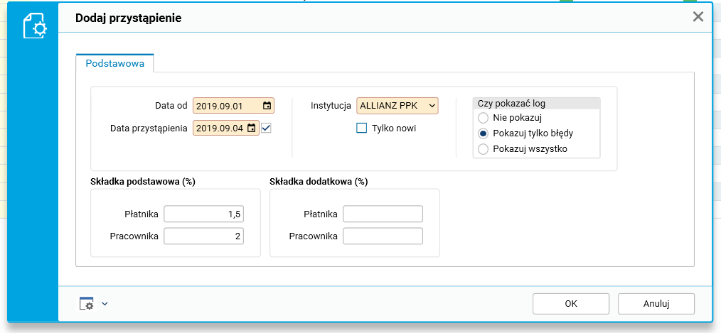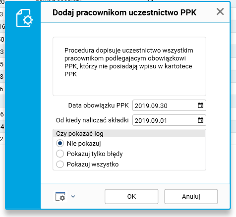 Rys. Parametry procedury Dodaj pracownikom uczestnictwo PPK