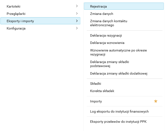 Słowniki służące do generowania informacji przekazywanych następnie do instytucji finansowej znajdują się w menu Eksporty i importy modułu PPK.