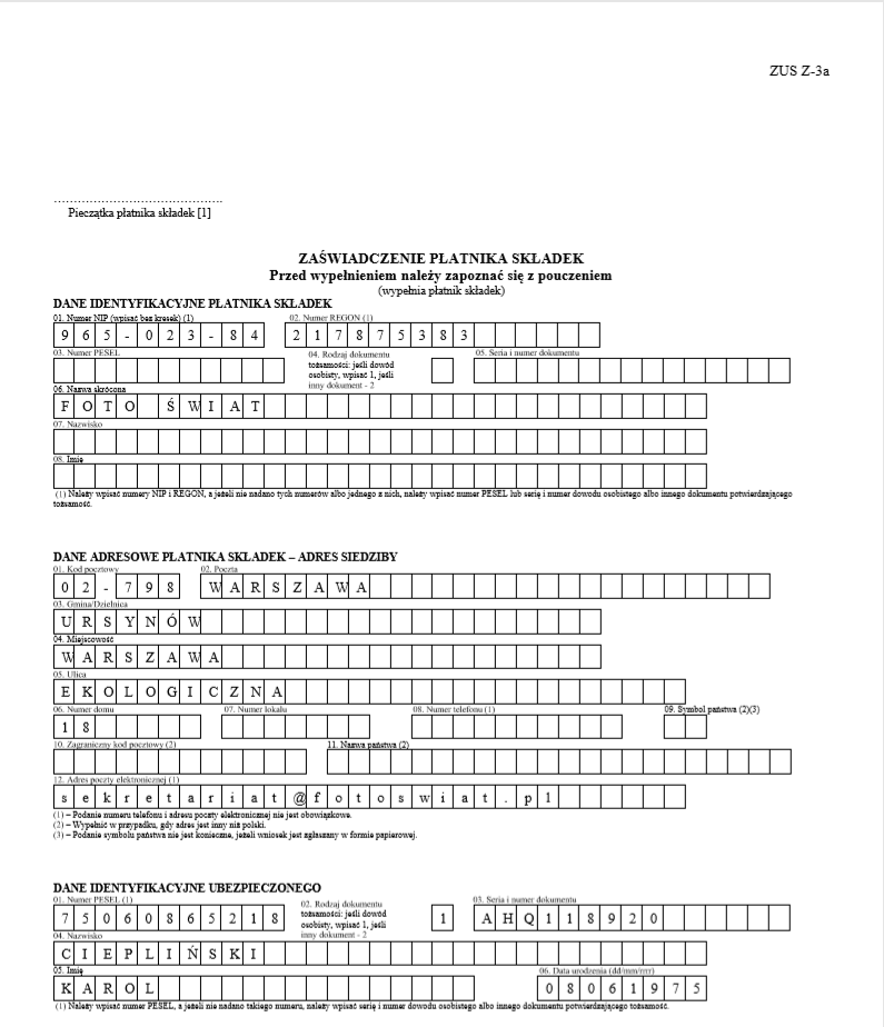 Rys. Zaświadczenie ZUS Z-3A, str.1
